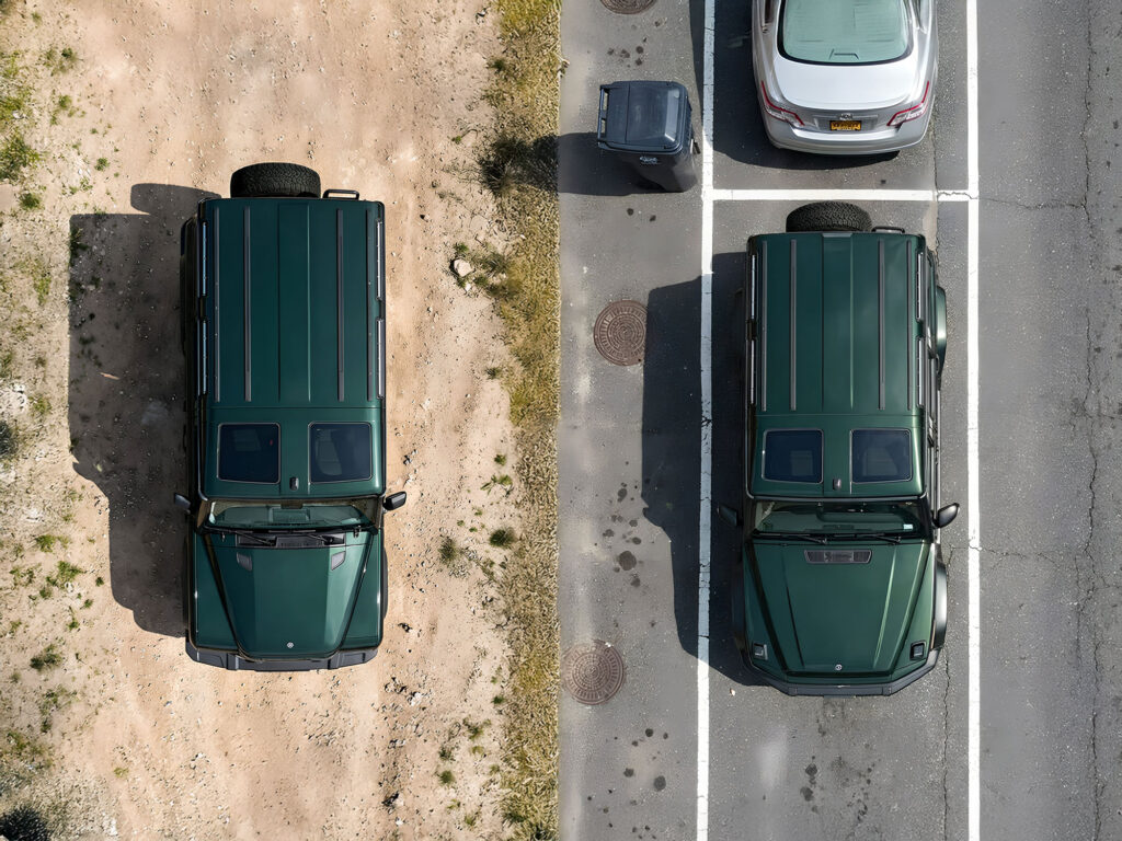 The Ineos Grenadier Around View Monitor (AVM) solves these visibility issues. This system uses four high-definition cameras discreetly mounted in the front grille, side mirrors, and rear housing, linked through existing vehicle channels to ensure a clean, professional finish.