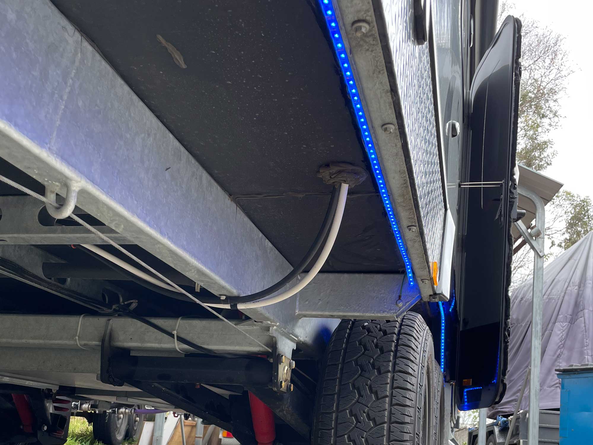 5050 SMD 300 LED lighting installed under the Jayco Journey caravan provides a welcoming blue ambient glow.