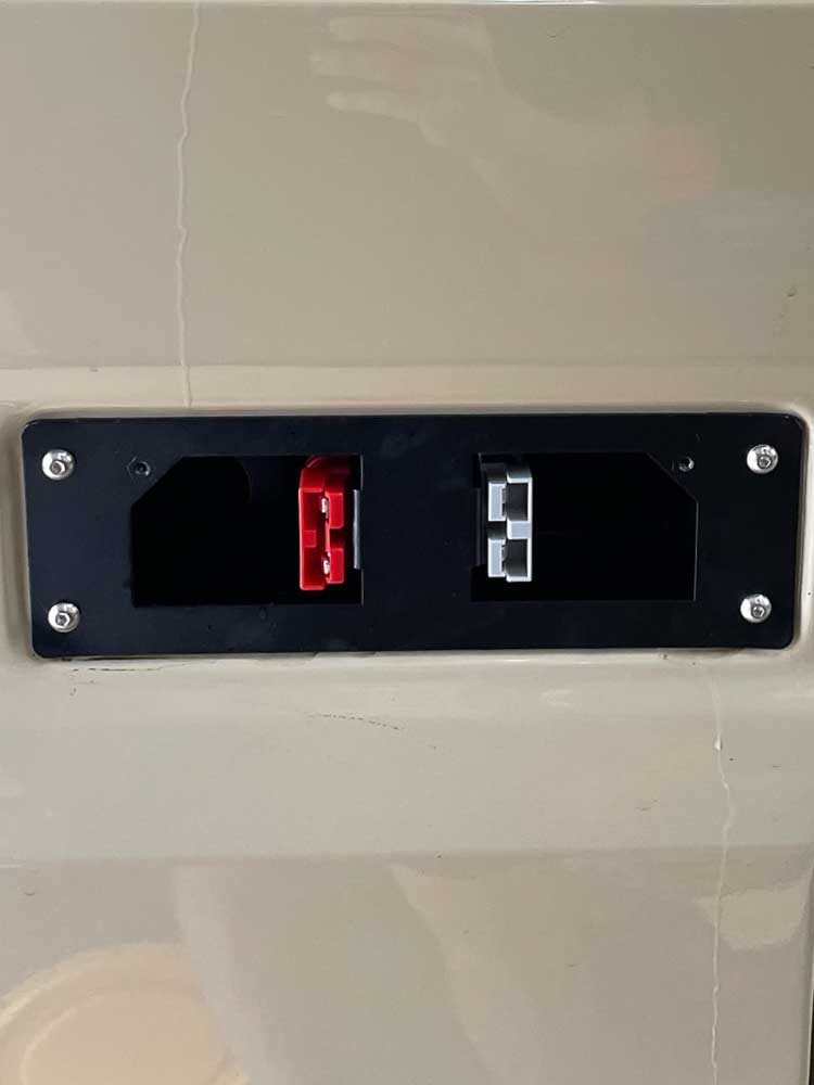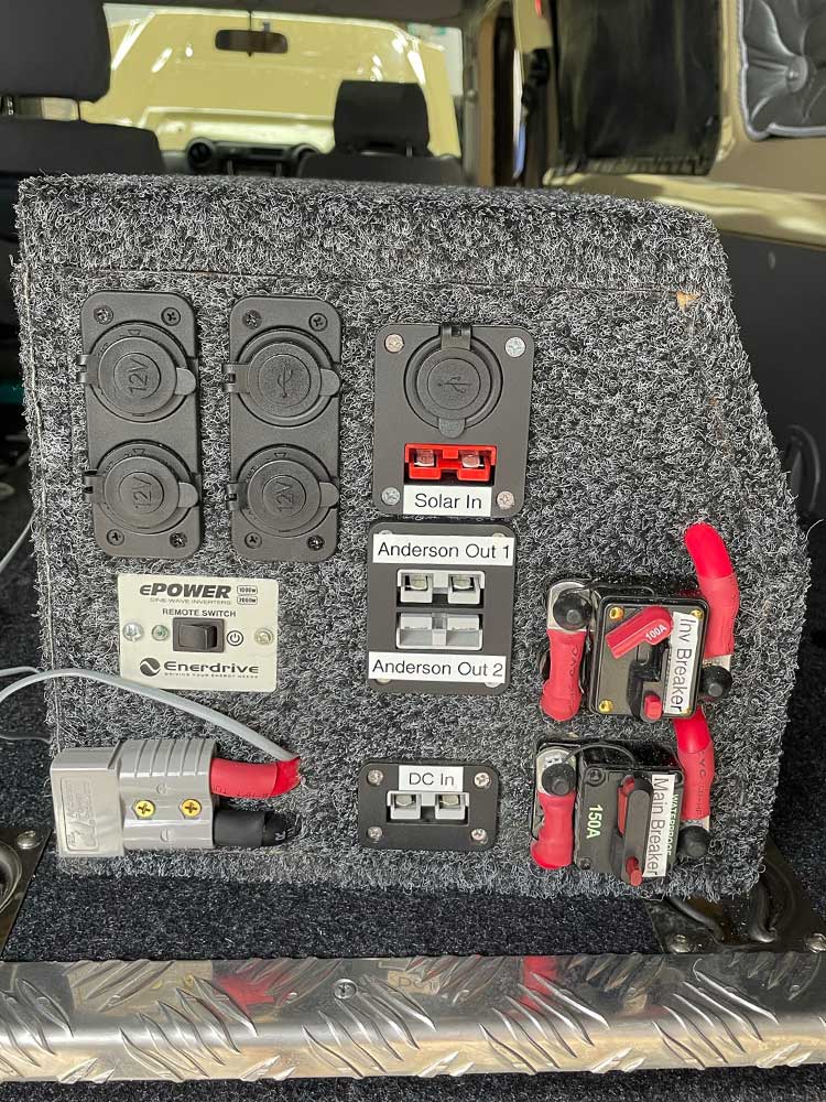 We designed the power station to follow the angle and contour of the vehicle’s seats where the station would be operated. Along with the DC/DC and solar charging components, we built the all-in-one system in line with all the customers’ needs, including multiple USBs, Cigarette lighters, red and grey Anderson plugs, and a disconnectable inverter. Flush mounting the Anderson panels adapted explicitly to the Troop allows the customer to use the power station exterior of the car easily.